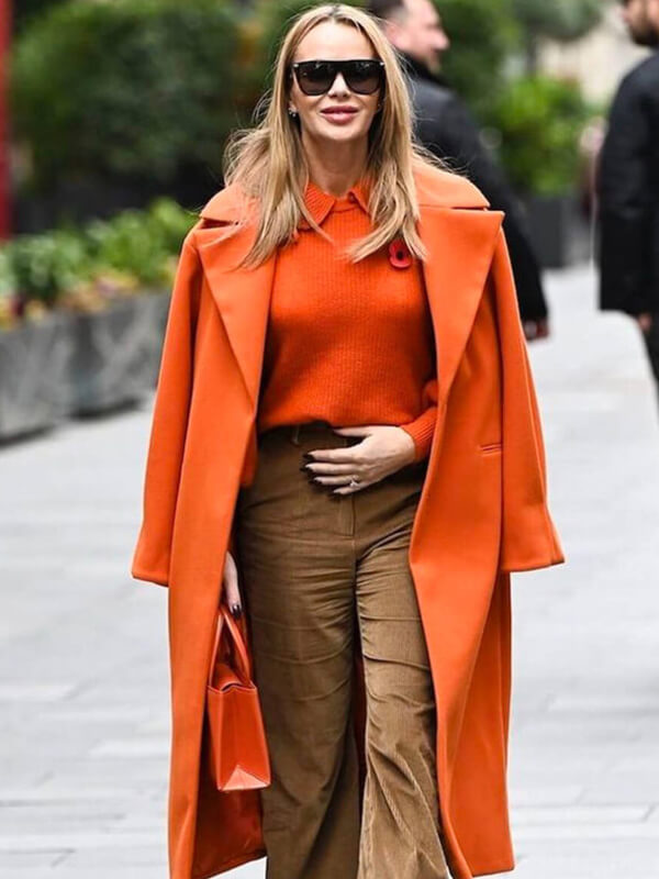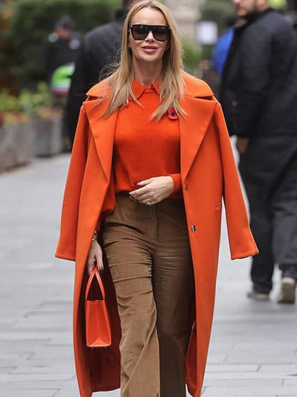 Make a bold fashion statement with the Amanda Holden Coat, a perfect blend of elegance, warmth, and vibrant style. Inspired by the iconic fashion sense of Amanda Holden, this coat features a rich orange hue that adds a splash of color to any winter wardrobe. Crafted from premium-quality wool, it offers luxurious softness and lasting warmth, making it ideal for cooler seasons. The tailored fit enhances your silhouette, while the classic lapel collar, sleek buttons, and clean lines bring timeless sophistication to modern outerwear. Whether you’re heading to a casual brunch, a professional meeting, or an evening event, this versatile coat adapts effortlessly to any occasion. Pair it with jeans and boots for a chic everyday look or dress it up with heels and accessories for a polished finish. The Womens Wool Coat is more than just outerwear-it’s a fashion statement that reflects confidence, charisma, and impeccable taste. With attention to detail and superior craftsmanship, it’s a must-have for anyone who values both comfort and style. Step out with grace and turn heads wherever you go with this standout piece in your winter collection.