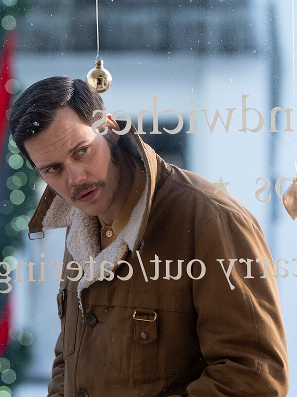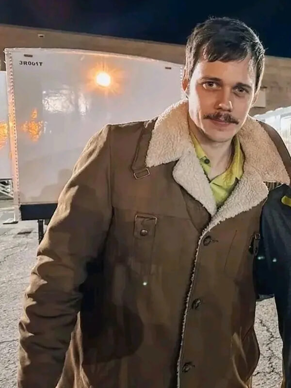 Bill Skarsgård Dead Man’s Wire 2025 Suede Shearling Coat