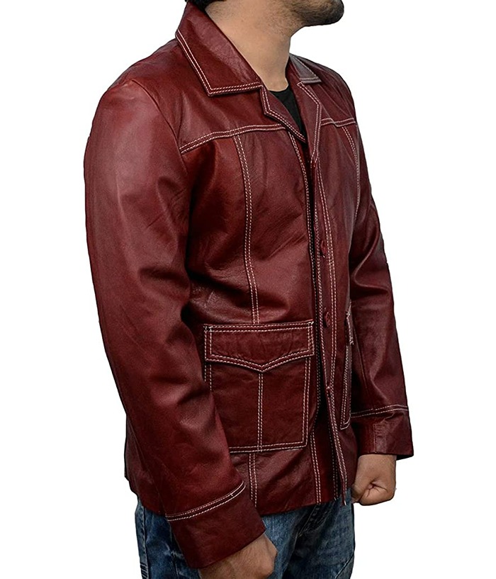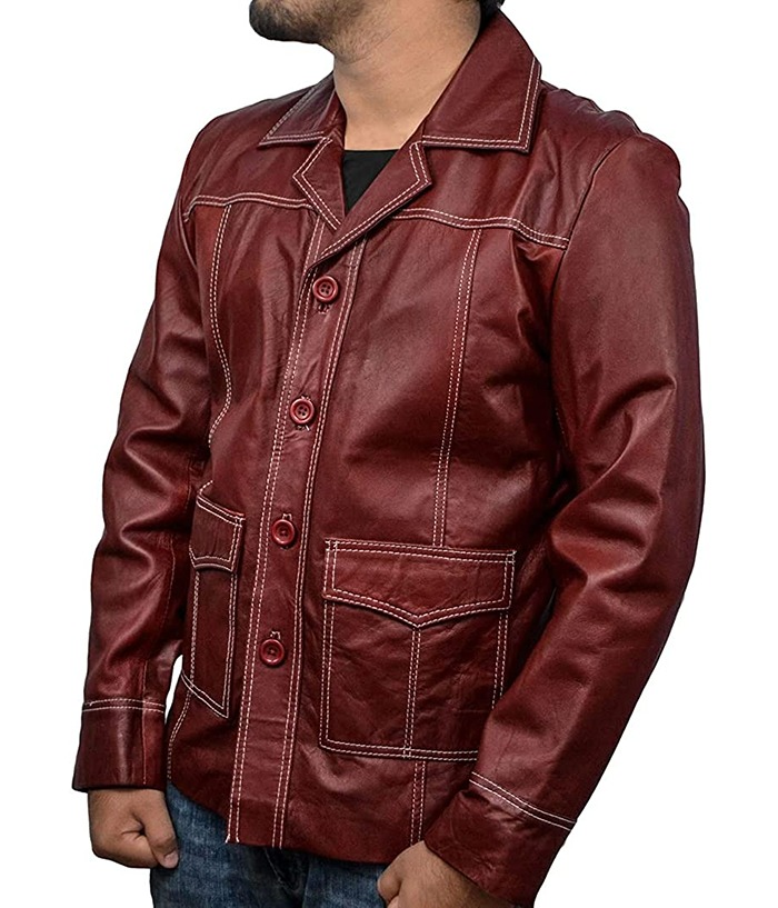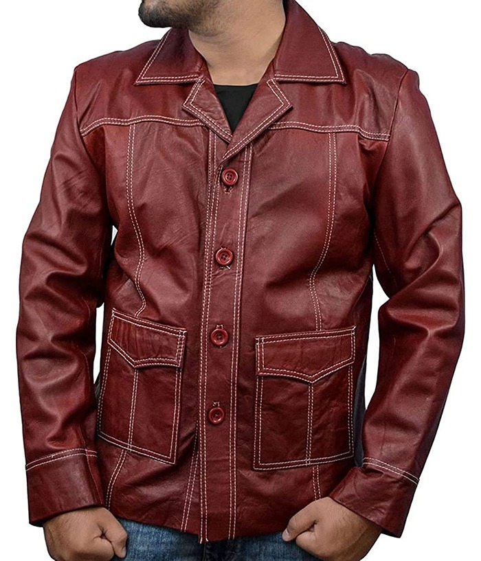 What truly sets this Fight Club Maroon coat apart, however, is its connection to the dark, subversive world of Fight Club. As a film that explores the themes of toxic masculinity, consumerism, and rebellion, Fight Club is a thought-provoking masterpiece, and Tyler’s iconic maroon leather coat has become an enduring symbol of the film’s themes and style. This Tyler Durden coat captures the essence of Tyler’s bold, unconventional personality, with its sleek design, premium materials, and undeniable swagger. Whether you’re a fan of cult classic cinema or just a lover of bold, avant-garde style, this coat is sure to help you unleash your inner rebel and take on the status quo.