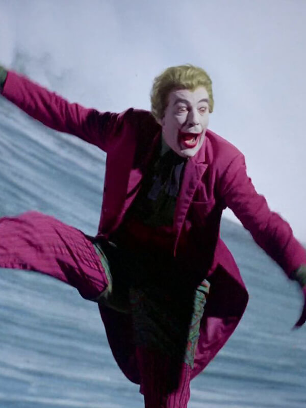 Cesar Romero’s Joker is instantly recognizable in his iconic pink tailcoat, a flamboyant and outrageous garment that perfectly captures the character’s penchant for drama and chaos. The tailcoat’s bright pink hue is a deliberate affront to the staid, respectable tones of Gotham City, embodying The Joker’s anarchic spirit and love of mayhem. Romero’s dashing performance is elevated by the coat’s absurdity, its exaggerated silhouette and flashy color adding to the actor’s over-the-top portrayal of the Clown Prince of Crime. Whether he’s scheming with his henchmen or clashing with Batman and Robin, The Joker’s pink tailcoat is a visual shorthand for his unpredictability and flair for the dramatic.