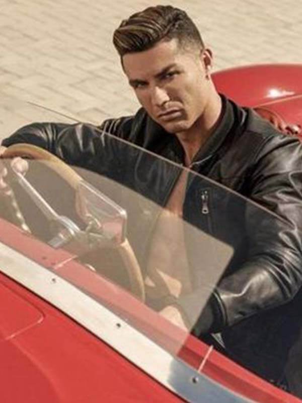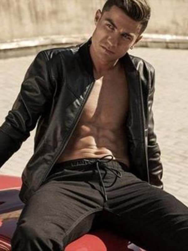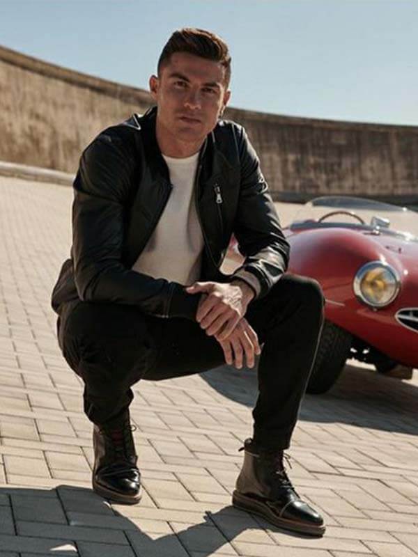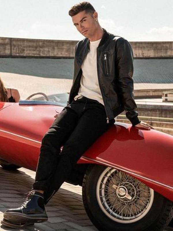 Cristiano Ronaldo Black Leather Bomber Jacket