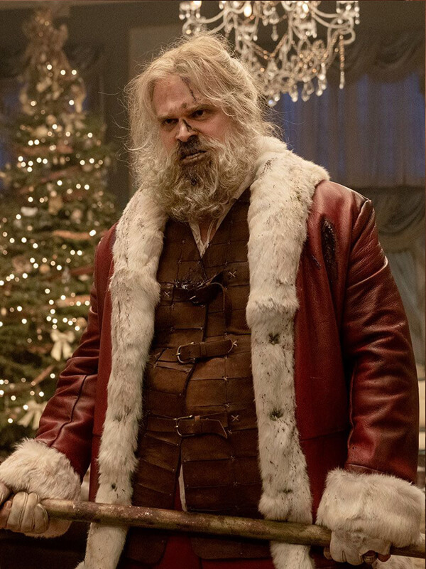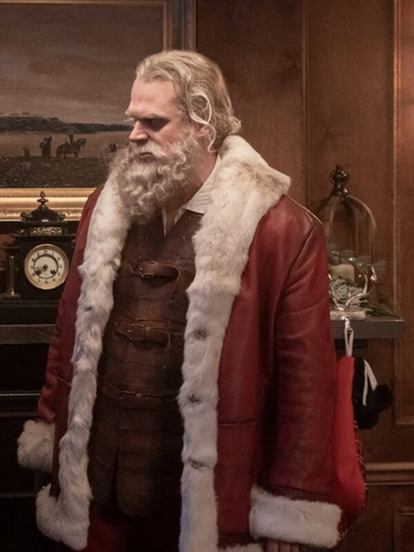 David Harbour Violent Night Babbo Natale Red Santa Coat