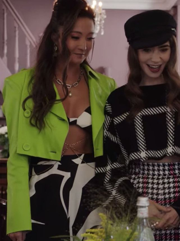 Add a touch of Parisian flair to your wardrobe with the Emily in Paris Leather Jacket, a chic and iconic replica of the attire worn by Mindy Chen, played by Ashley Park, in the hit Netflix series.