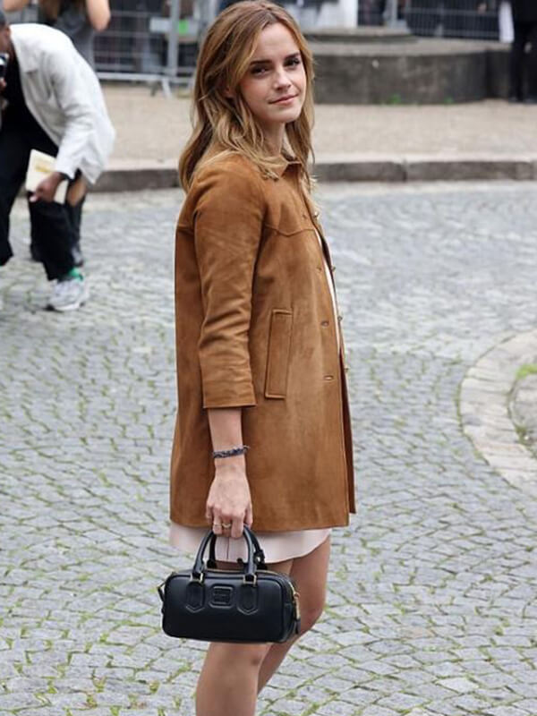 Emma Watson Brown Suede Leather Coat