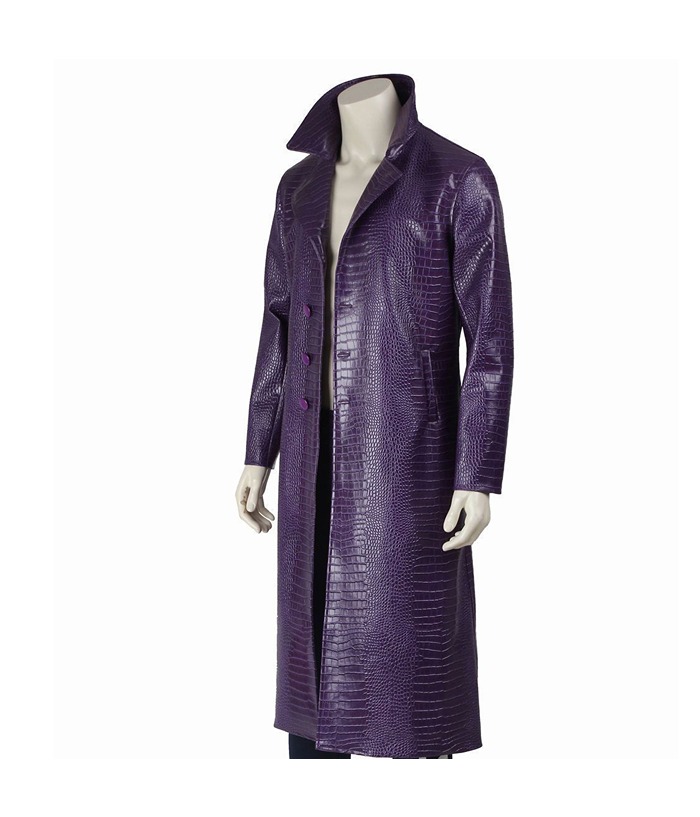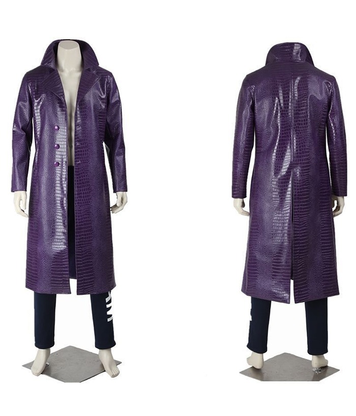 The coat itself is a vibrant purple, with an exaggerated, asymmetrical design that adds to the Joker’s already unhinged persona. The fabric appears worn and distressed, giving the costume a delightfully maniacal look. The sleeves are long and flared, with a subtle sheen that catches the light, evoking the Joker’s unpredictable behavior. The Suicide Squad costume which are adorned with subtle, intricate details that add depth and complexity to the overall design.