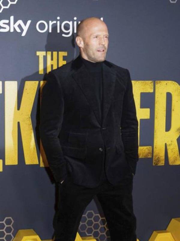 The Beekeeper Blazer is the epitome of suave sophistication and quiet strength, much like the man who wears it on screen. Inspired by Statham’s sharp and composed presence in The Beekeeper, this blazer blends luxury with intensity in a way that few garments can. Crafted from rich black velvet, it offers a soft, opulent texture that contrasts beautifully with the strong, structured tailoring. A single-breasted design with a classic notch lapel, buttoned cuffs, and a sleek two-button front closure give it a timeless yet commanding edge. The inner lining is smooth and breathable, ensuring maximum comfort while maintaining its sharp silhouette.