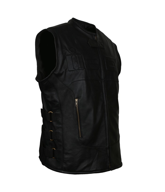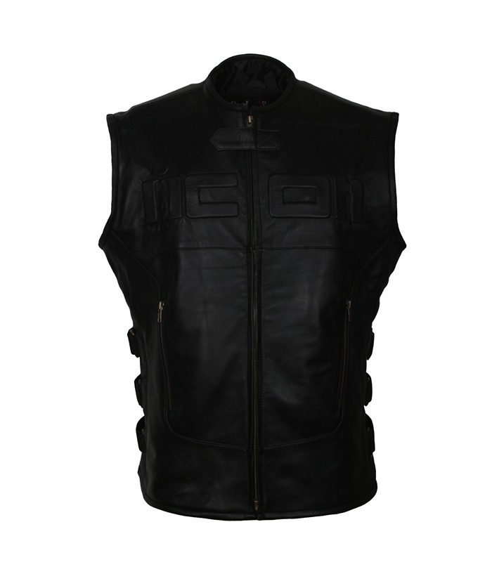 Mens Motorcycle Rider Icon Biker Black Leather Vest