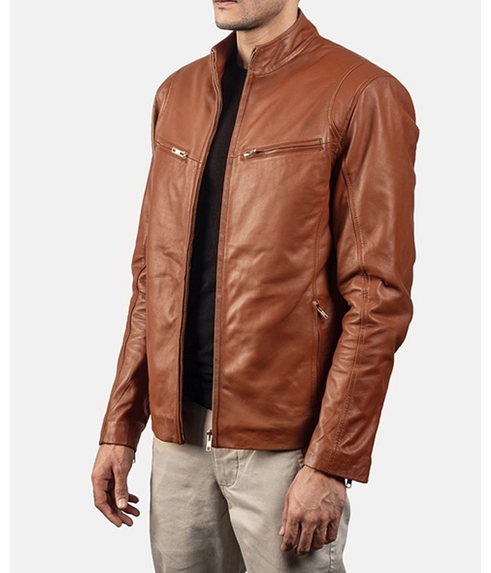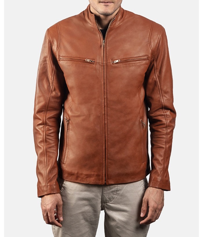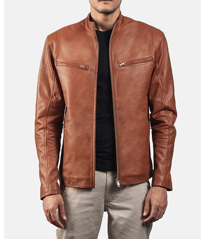 Men’s Vintage Biker Classic Tan Leather Jacket