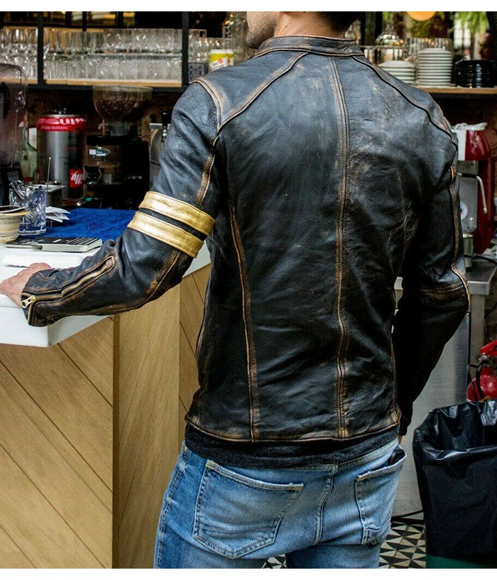 Retro Vintage Motorcycle Distressed Black Leather Jacket