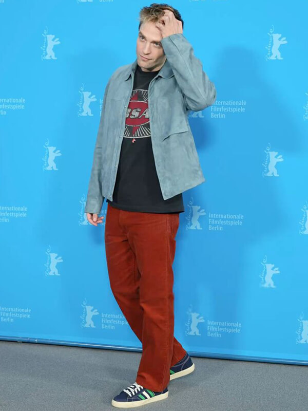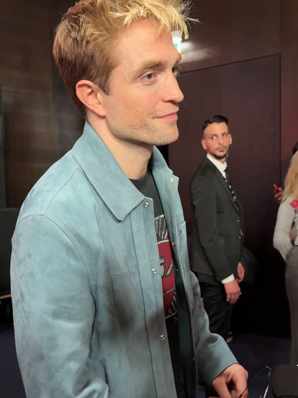 Robert Pattinson’s Suede jacket in Mickey 17 exudes an air of quiet sophistication and rugged charm. Crafted from luxurious suede leather, this jacket’s soft, velvety texture and rich blue hue evoke the sense of a crisp, moonlit night on the desolate planet of Nefud IV. The jacket’s streamlined silhouette and nipped-in waist accentuate Mickey’s lean, athletic build, while the subtle creases and worn-in texture suggest a well-traveled and battle-hardened past. A sleek, minimalist design ensures the jacket doesn’t overpower Mickey’s introspective demeanor, instead complementing his brooding gaze and sharp features.