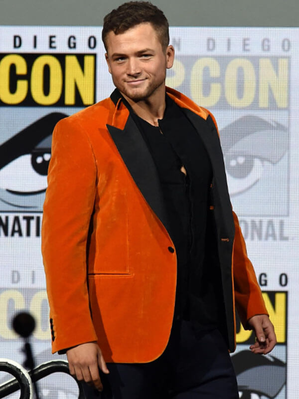 Kingsman: The Golden Circle Coat is the epitome of British sophistication with a bold, modern edge. Inspired by Egerton’s portrayal of Eggsy in the stylish spy sequel, this coat blends classic tailoring with a touch of extravagant flair. Crafted from luxurious orange velvet, it radiates confidence and charisma, making it impossible to ignore. The rich fabric catches light with a subtle sheen, while the sleek black velvet shawl collar adds contrast and polish. Its structured shoulders, single-button closure, and slim cut mirror the traditional dinner jacket-but with a flamboyant twist worthy of a secret agent with flair.
