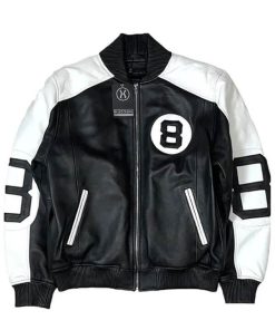8 Ball Pool Leather Jacket is an iconic fashion piece that has stood the test of time, embodying boldness, individuality, and street-style edge. First popularized in the late ’80s and early ’90s, this jacket quickly became a cultural symbol, known for its eye-catching design and rebellious vibe. Crafted from premium-quality leather, it offers durability along with a sleek, structured appearance that sets it apart from standard varsity jackets. Its standout feature, of course, is the large “8 Ball” graphics on the back and sleeves, paired with vibrant color-blocked panels that instantly command attention. With ribbed cuffs, hem, and collar adding a sporty touch, and a front snap-button closure completing its authentic varsity silhouette, this jacket captures retro nostalgia while remaining fashionable today.