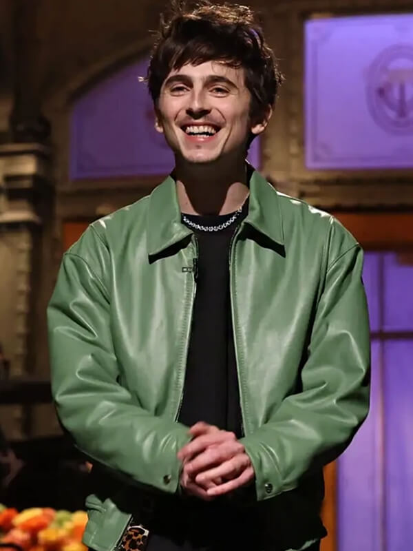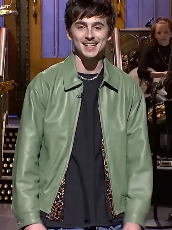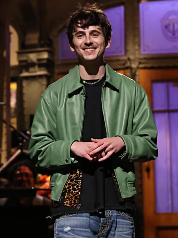 Timothée Chalamet SNL Green Leather Jacket