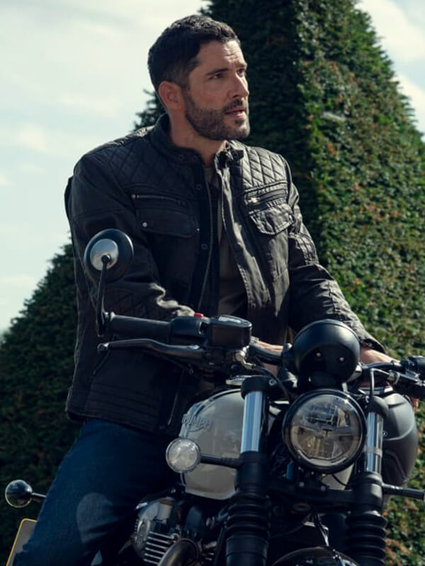 Tom Ellis The Thursday Murder Club Black Leather Jacket