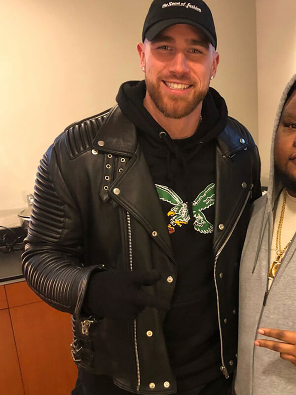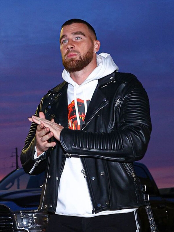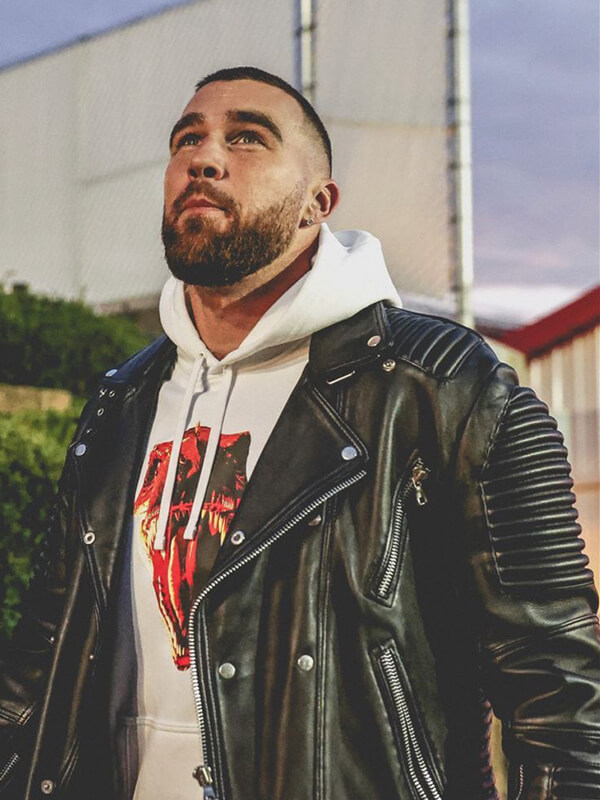 Travis Kelce Biker Black Leather Jacket